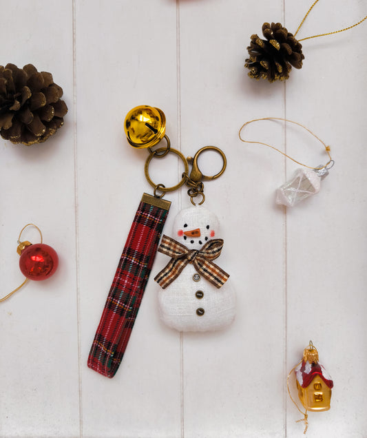 Christmas Keychain with Linen Snowman
