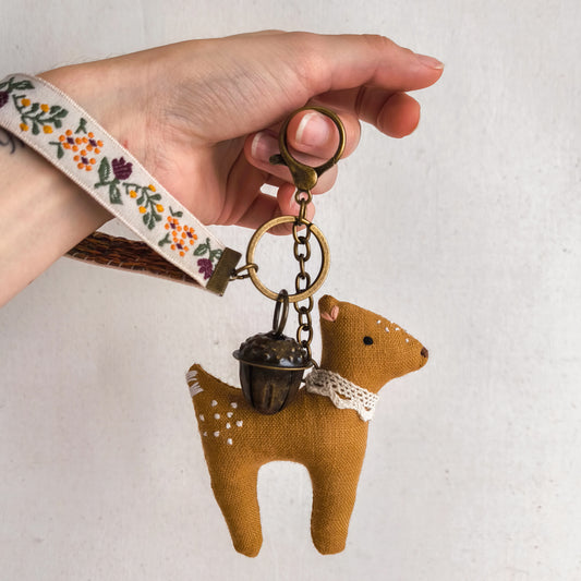 Keychain with Linen Deer and Acorn Bell