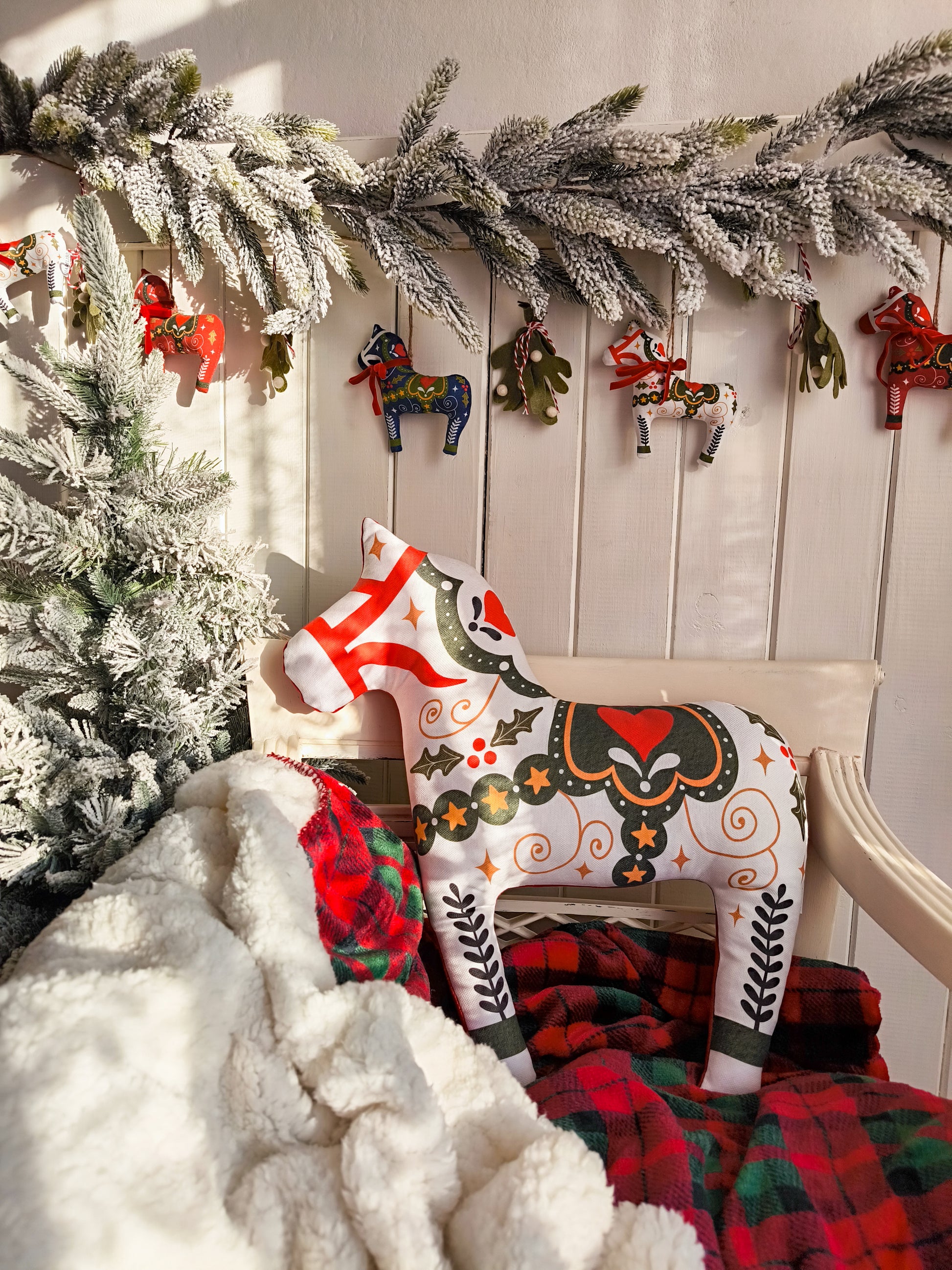 Add a warm, festive, and authentic Scandinavian touch to your space with this beautifully crafted Dala horse pillow ♞❁❄
